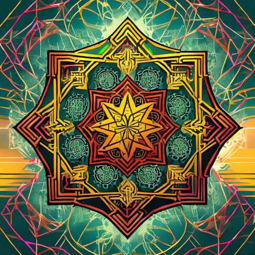Ein Mandala ist typischerweise kreisförmig und weist eine 360° Symmetrie auf. Die Formen, die ein Mandala bildet, sind dabei stets um einen Mittelpunkt ausgerichtet. Diese zentralisierte Anordnung und die strengen Regeln, nach denen Grösse, Anzahl und Abstände der Formen definiert sind, führen zu einer harmonischen und oft meditativen Wirkung. Der Winkel spielt eine entscheidende Rolle bei der Bestimmung, wie und wo die Elemente positioniert werden.
